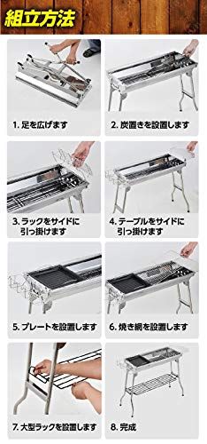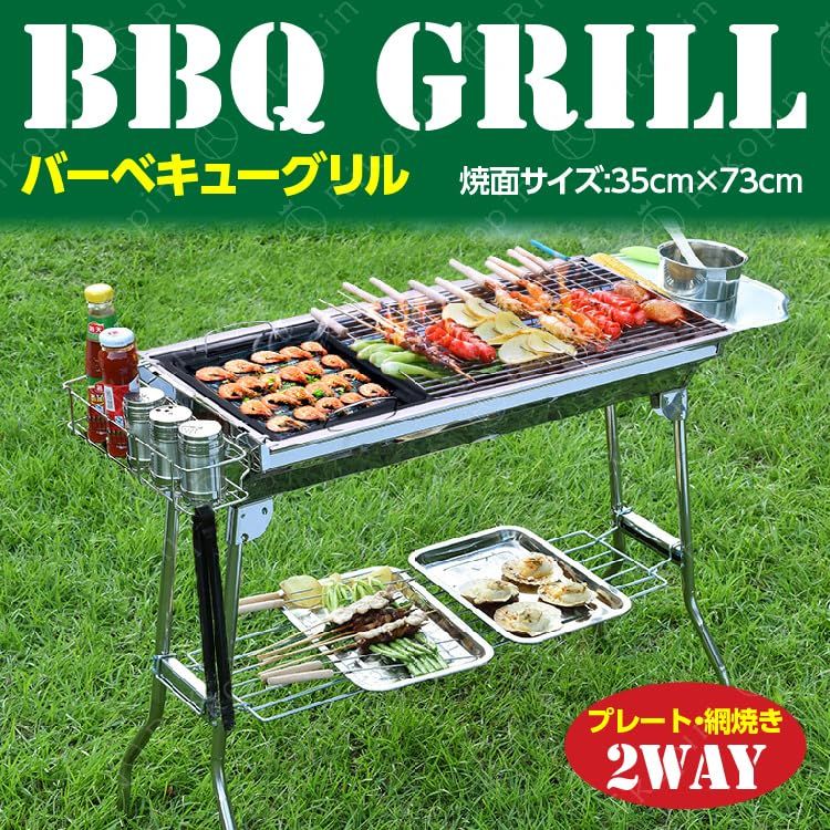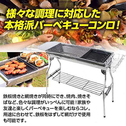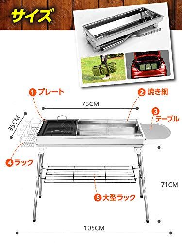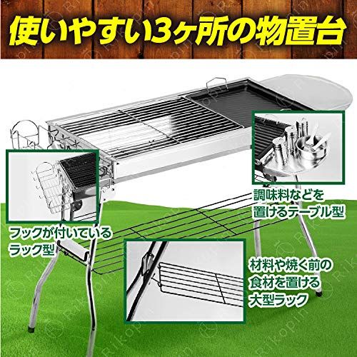 Rikopin リコピン バーベキューコンロ 大型 セット 折りたたみ式 6?8人用 35cm×73cm×71cm バーベキューグリル 炭網付き ステンレス 軽量 BBQ 網 鉄板 アウトドア バーベキューコンロ 32422fa8