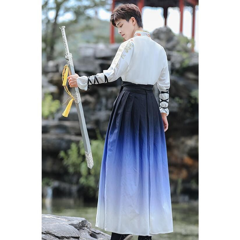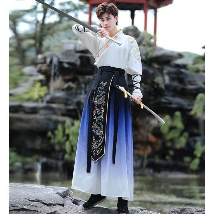 ハロウィン チャイナ服 メンズ 漢服 中華服 グラデーション 中華コスプレ衣装 長袖 上下2点セット 3点セット 龍刺しゅう 男性用 カン