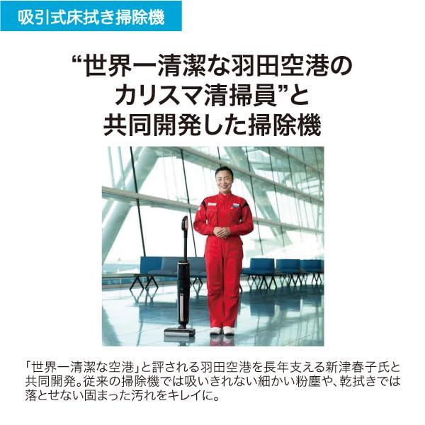 【独自の吸引式床拭きテクノロジー】「マルチパワフル吸引」で汚れをしっかりと吸い上げながら、「モップローラーブラシ」で床をきれいに拭き上げる、進化した床拭き構造。