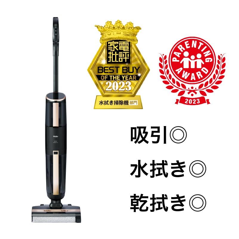 家電批評 年間ベストバイ受賞 ハイアール Haier 水拭き掃除機 乾湿両用 スティッククリーナー コードレス 強力吸引 水拭き 床拭き MIZUKI ブラック JC-M1A K kk