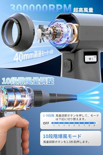 家電批評ベストバイ受賞 エアダスター 電動ブロワー 洗車 史上爆風No.1 2026年充電改良 300000RPM超強力高速回転 10段階風量調整 20000mAHバッテリー ノズル9種類付 40MMブラシレスモーター BOLYDOOM 54b9cc48