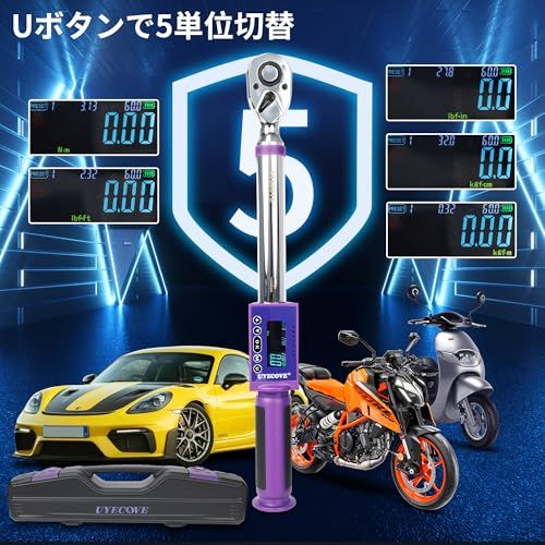 【3モード・5単位測定】測定範囲や広く万能で使いやすい、自動車タイヤ交換などの整備におい用途に合わせて必要なデジタルトルクレンチ。
