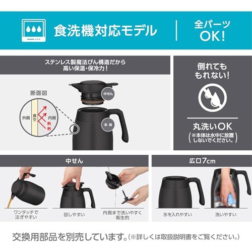 食洗機対応モデル サーモス ステンレスポット 1.5L ダークグレー 保温ポット 卓上ポット 保温保冷 広口設計 TTG-1500 DGY m adf213f9