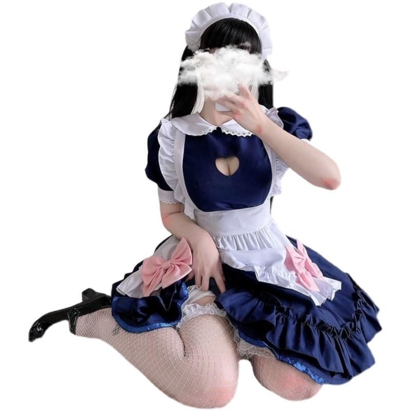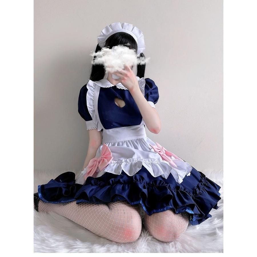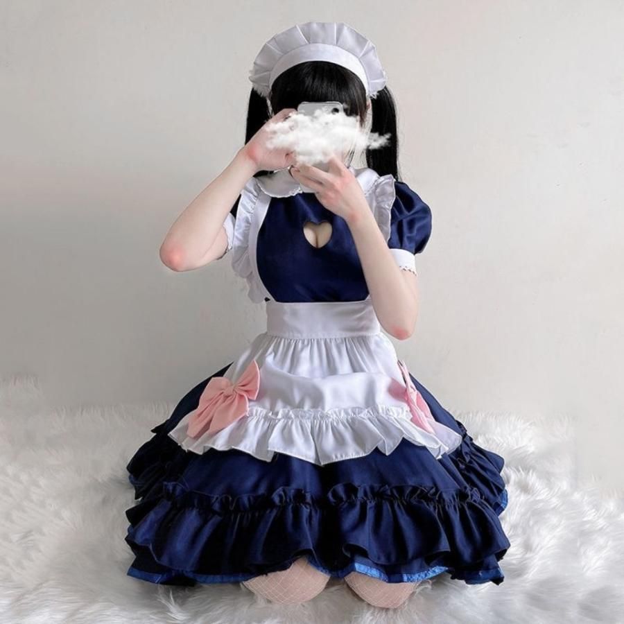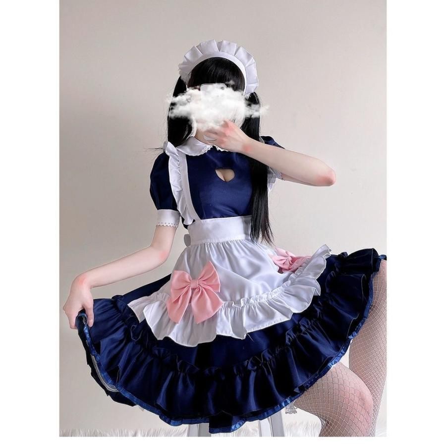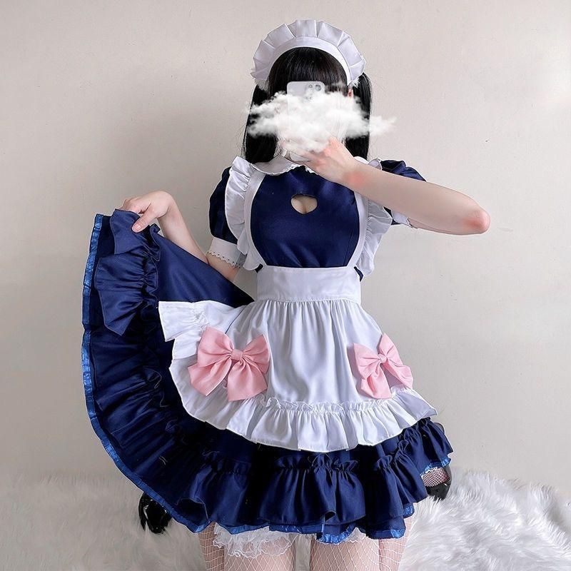 日系 青白 メイド 女性用 大 日常 メイド ロリータ ワンピース セット 大 文化祭 meilu51204