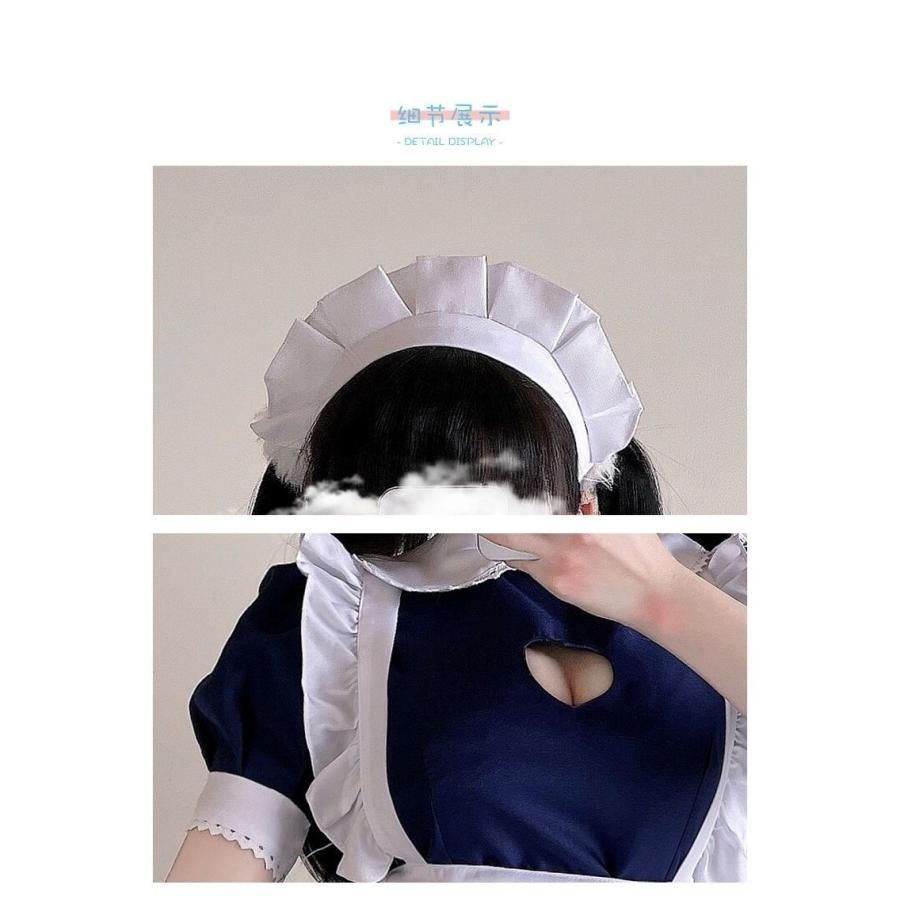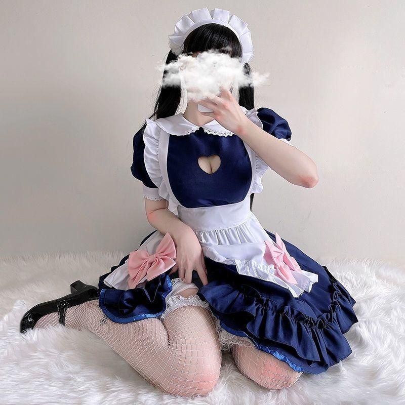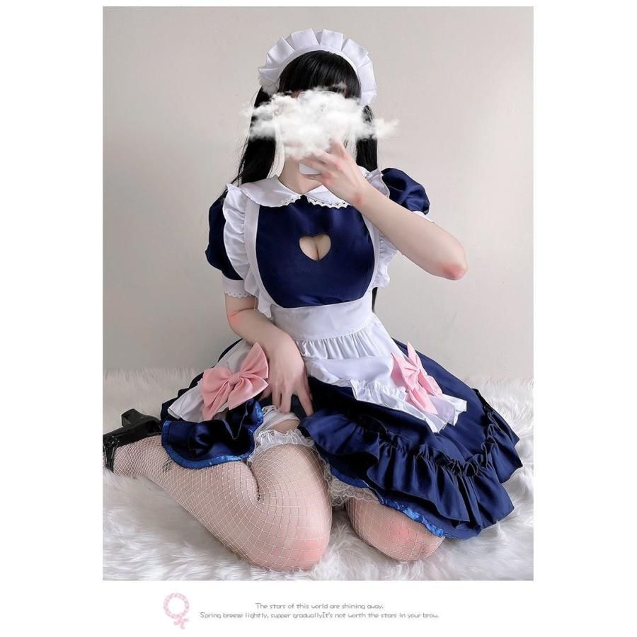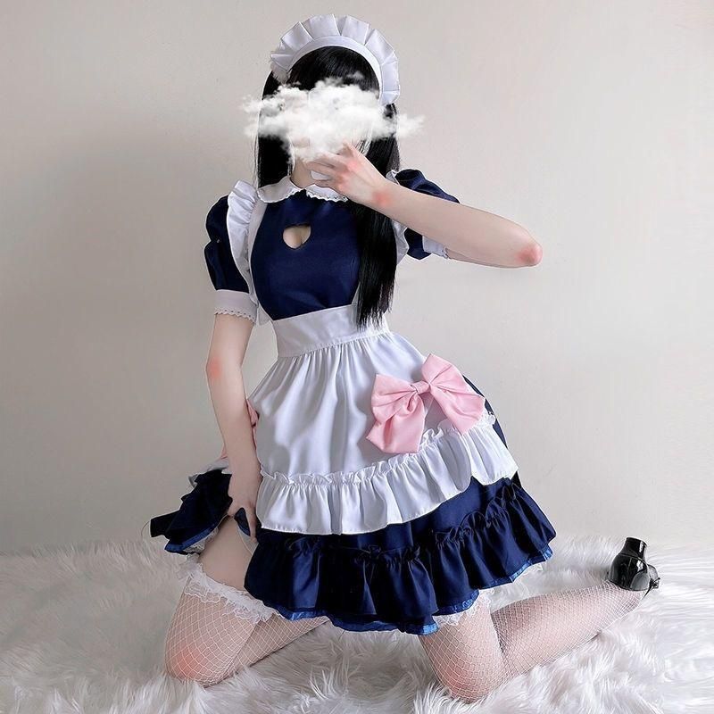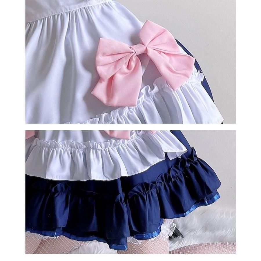 日系 青白 メイド 女性用 大 日常 メイド ロリータ ワンピース セット 大 文化祭 meilu51204