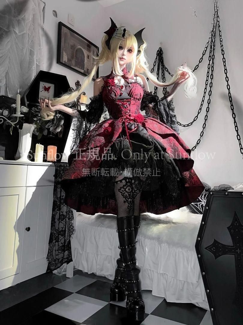 ドレスロリータセット 仮装 オリジナル 洋服 ロリータ ワンピース レッド 撮影会 舞台 イベント CJS1212P056