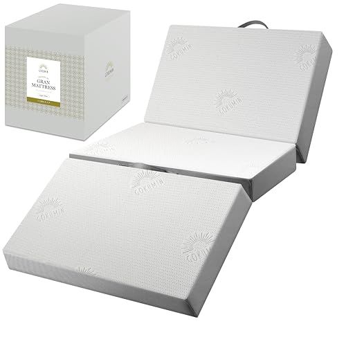 GOKUMIN マットレス 高反発 180N 250N 2層構造グランマットレス 厚さ10cm 三つ折り ベッドマット 敷布団 硬め 折りたたみ 凸凹加工 高密度 34D 眠 シングル|ホワイト gmw m f91bfe35